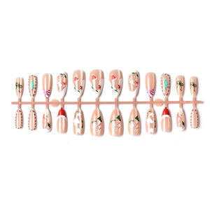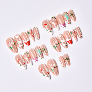 24片外贸圣诞节杏仁猫眼穿戴甲彩绘圣诞帽糖果雪花蝴蝶结法式美甲