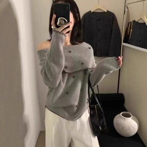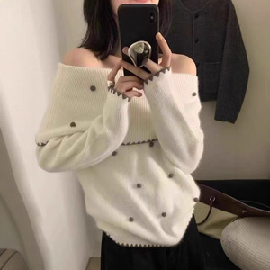2025秋季新款独特漂亮上衣白色波点一字肩高级名媛韩系慵懒风内搭