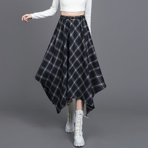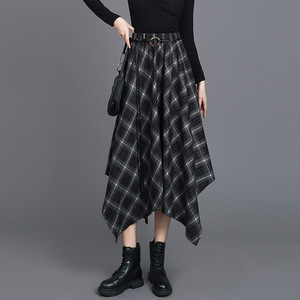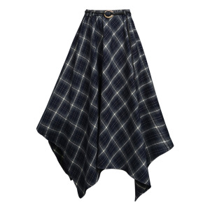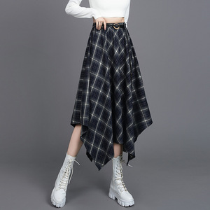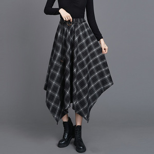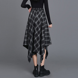 不规则格纹半身裙女2025秋季复古格子松紧腰显瘦中长款a字裙