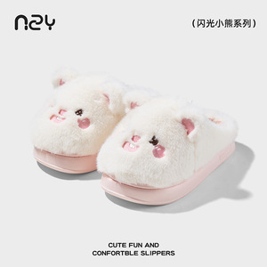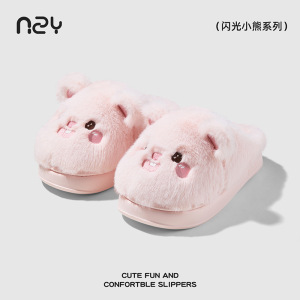 奇丹鞋厂可爱卡通棉拖鞋女秋冬季居家室内加绒保暖毛毛拖鞋女