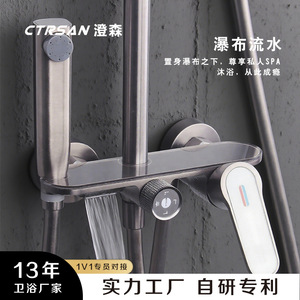 高端花洒精铜四档旋转恒温阀芯花洒套装增压喷头淋浴套装现货直发