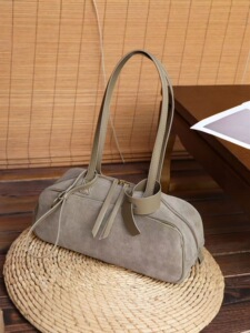 磨砂牛皮枕头包大容量单肩包2025新款欧美风时尚女包保龄球腋下包