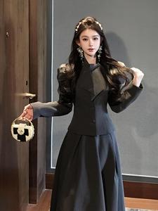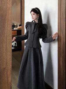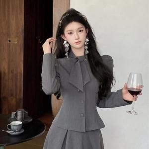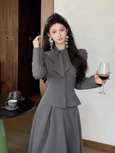 法式小香风气质名暖套装女2025秋季新款设计感小众领结西装两件套