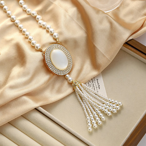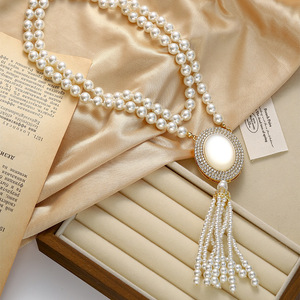 国风复古珍珠项链小众设计高级感秋冬奢华毛衣链腰链服装配饰吊坠