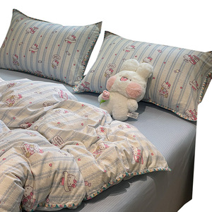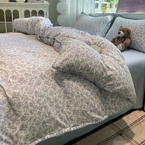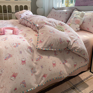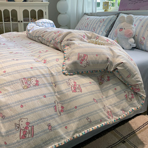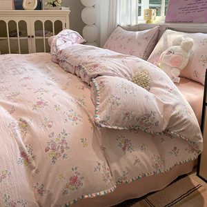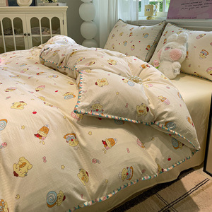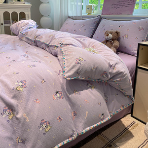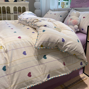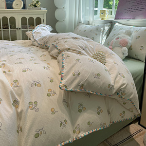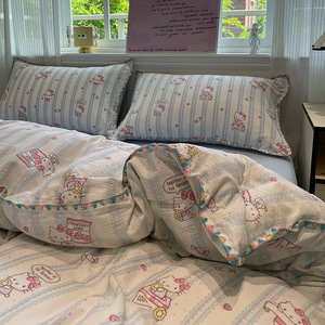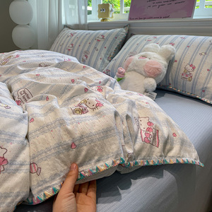 A类贝壳边双层纱四件套软糯纯水洗棉床单被套床笠宿舍单人三件套4
