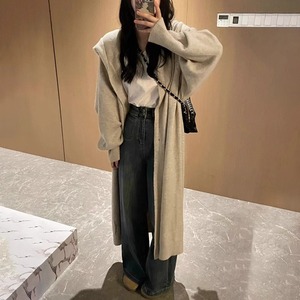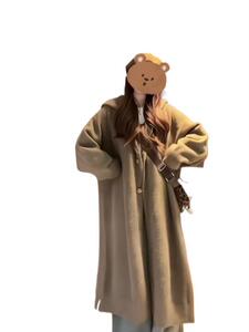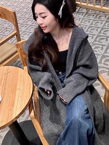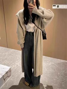 灰色连帽长款毛衣女秋季2025新款宽松慵懒风高级感针织开衫外套