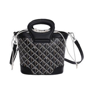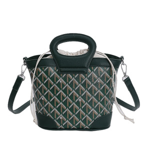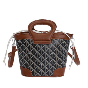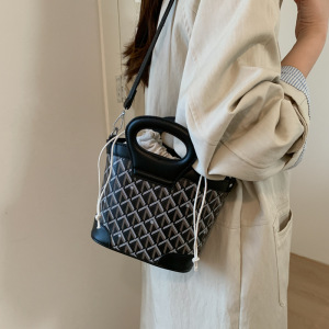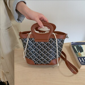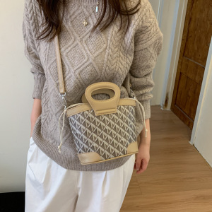 韩国印花狼牙包格纹拼色手提水桶包包女2025新款休闲单肩斜挎包潮