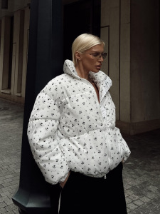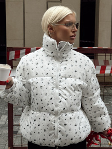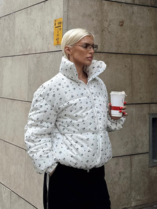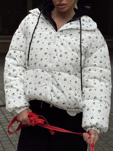 跨境小狗爪印立领印花棉服女冬季清新可爱宽松加厚保暖上衣外套女