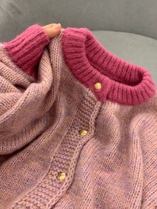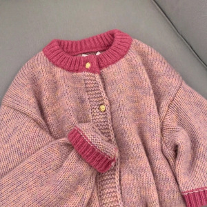 小香风粉色短款毛衣外套女秋冬加厚慵懒风小个子春季针织开衫上衣
