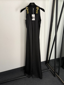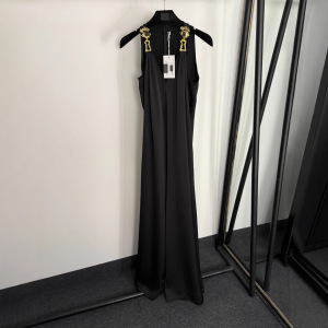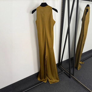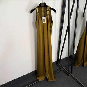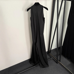 2025新款奢华镶钻眼睛金属扣装饰V领吊带无袖背心连体裤 阔腿长裤