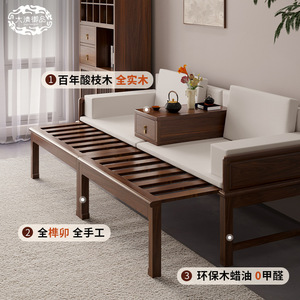 新中式酸枝木罗汉床客厅可推拉伸缩沙发床全实木红木榻榻米禅意床