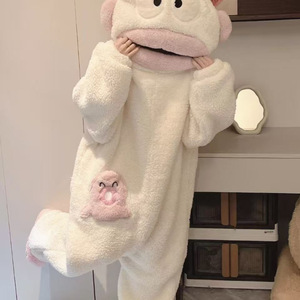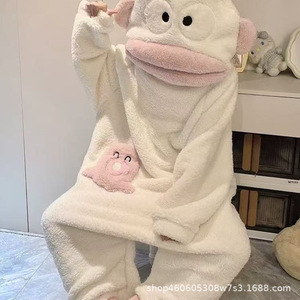 白色丑鱼睡衣连体珊瑚绒秋冬季加厚保暖搞怪卡通睡袍大嘴鱼可外穿