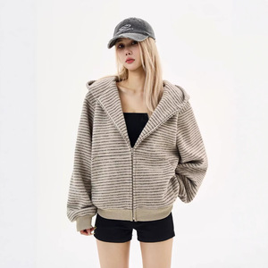 气质潮流慵懒时尚拉链外套条纹复合美式开衫连帽卫衣男女运动休闲