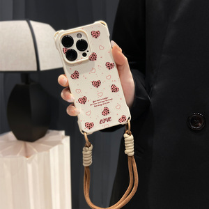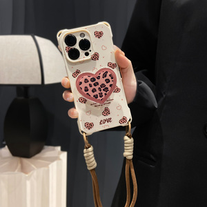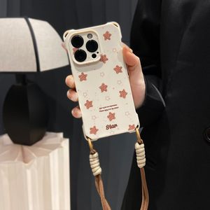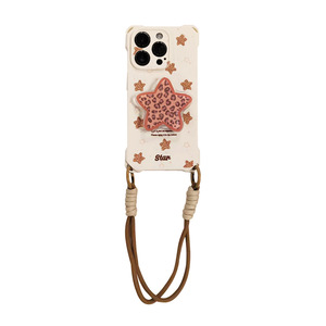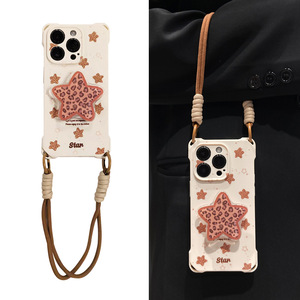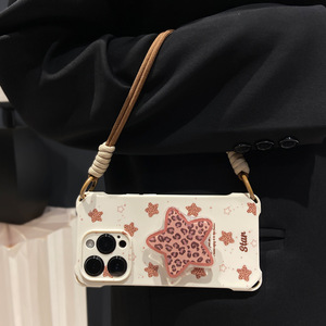 适用iPhone16手机壳ins豹纹星星支架苹果15Pro/17斜跨挂绳保护壳
