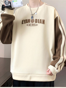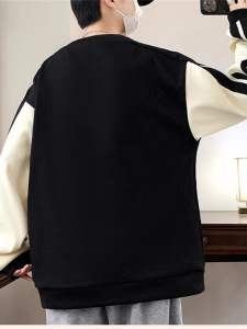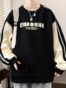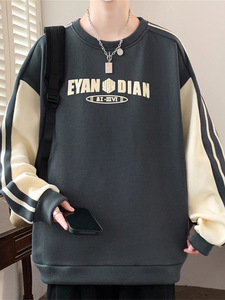 新款休闲卫衣男春秋季潮流时尚百搭拼色圆领长袖大码T恤穿搭上衣