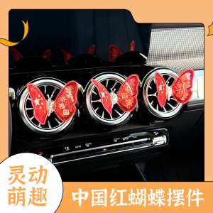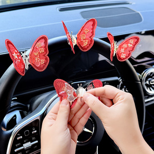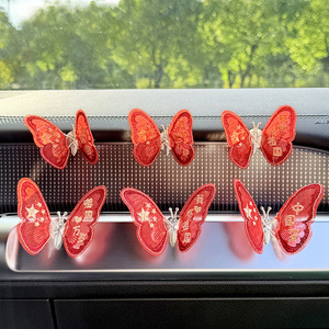 新款爱国系列刺绣汽车装饰摆件会动的蝴蝶车内香薰车用饰品批发