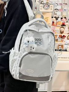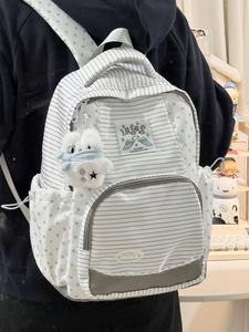 新款可爱简约ins风大容量双肩包条纹星星设计感背包小众百搭书包