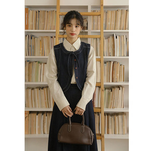 2025秋季新款文艺日系弧形系带牛仔马甲上衣女叠穿小个子无袖背心