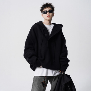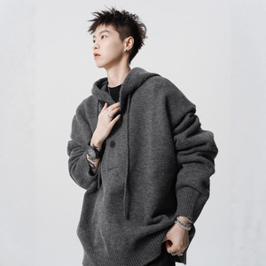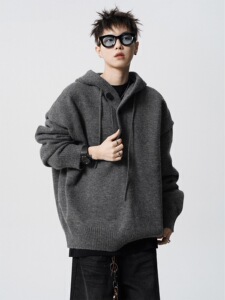 高街纯色连帽针织衫男款秋季美式cleanfit连帽卫衣高级感痞帅毛衣