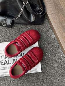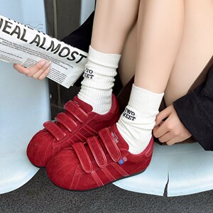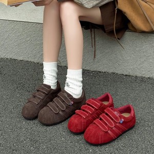 2025年新款磨砂红色魔术贴卡皮巴拉大头休闲板鞋德训鞋平底单鞋女