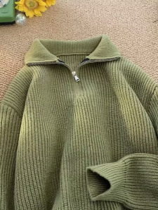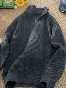 半高领拉链套头毛衣男秋冬季港风复古慵懒上衣日系百搭情侣针织衫