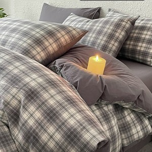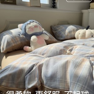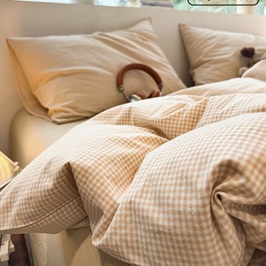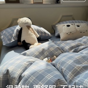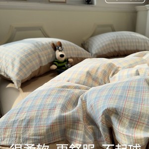 ins简约格子灰床上四件套全棉纯棉2025年新款被套床单床品三件套