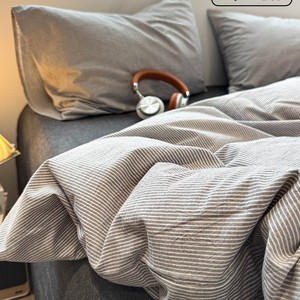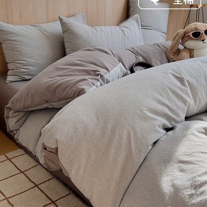 全棉水洗棉套件-细条灰 【100%纯棉 亲肤柔软】