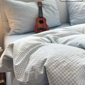 全棉水洗棉套件-蓝细格 【100%纯棉 亲肤柔软】