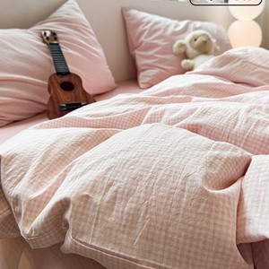 全棉水洗棉套件-粉细格 【100%纯棉 亲肤柔软】
