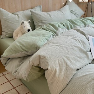 全棉水洗棉套件-细条绿 【100%纯棉 亲肤柔软】