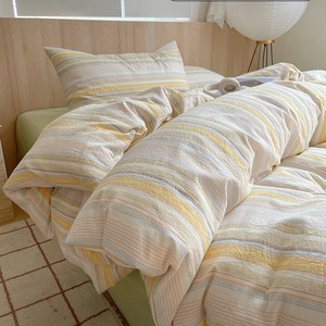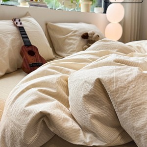 全棉水洗棉套件-米密条 【100%纯棉 亲肤柔软】