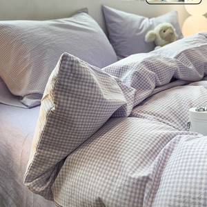 全棉水洗棉套件-紫细格 【100%纯棉 亲肤柔软】
