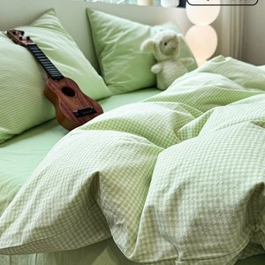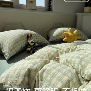 全棉水洗棉套件-绿细格 【100%纯棉 亲肤柔软】