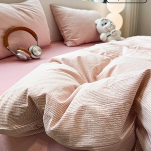 全棉水洗棉套件-粉密条 【100%纯棉 亲肤柔软】