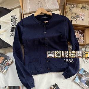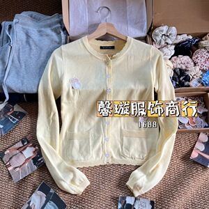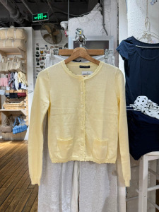BM风 美式黄色花边针织长袖开衫秋季bm纯色可爱百搭毛衣外套上衣