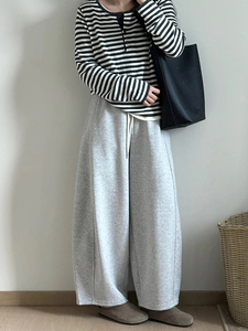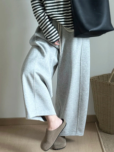 灰色阔腿弯刀运动卫裤子女秋小个子大码休闲裤今年流行九分梧桐裤