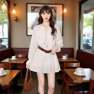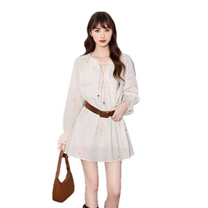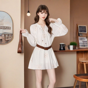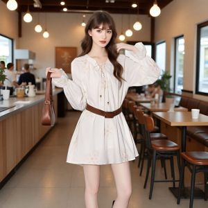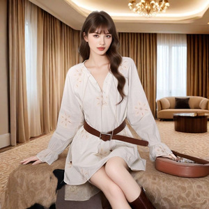 法式复古重工提花剌绣连衣裙2025秋冬新款度假时尚减龄绑带短裙女