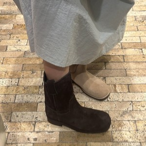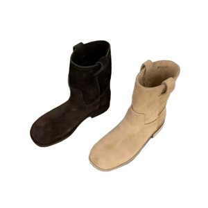 羊皮版~复古磨砂绒面圆头低跟西部牛仔靴短靴女2025新款马丁靴子