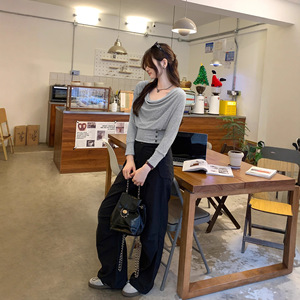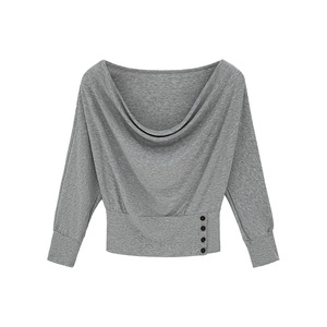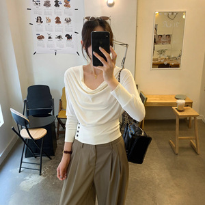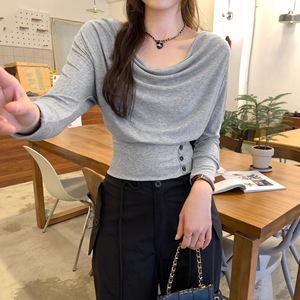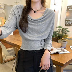 今年流行设计感荡领长袖t恤女装潮韩版2025早秋新款好物短款上衣
