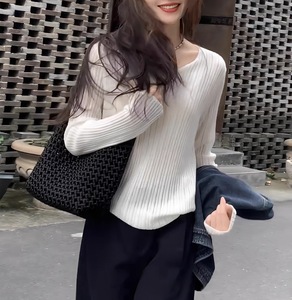 法式感漂亮白色V领上衣女2025年秋季新款针织衫设计小众