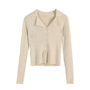 法式翻领长袖针织开衫女秋季2025新款小众设计感修身打底短款上衣