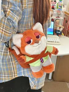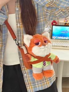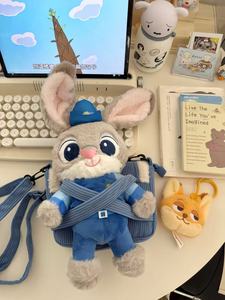 新款可爱卡通尼克朱迪斜挎包软萌立体背包少女jk公仔毛茸茸书包女