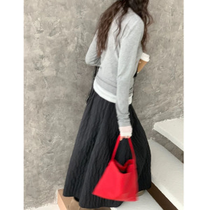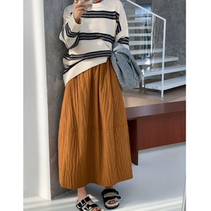 韩系简约肌理感立体花苞裙氛围显瘦高腰百搭绗线中长半身裙女秋冬