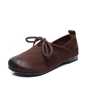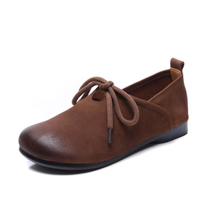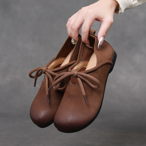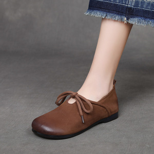 头层牛皮复古单鞋女2025秋冬新款防滑百搭耐磨真皮平底休闲女鞋