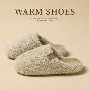 羊羔绒棉拖鞋女士秋冬季2025新款家居室内保暖厚底情侣棉拖鞋