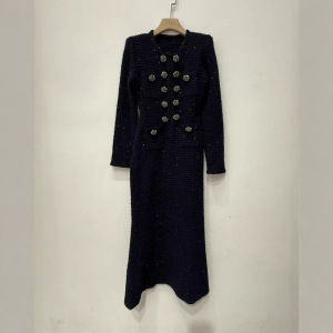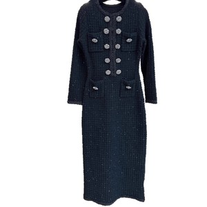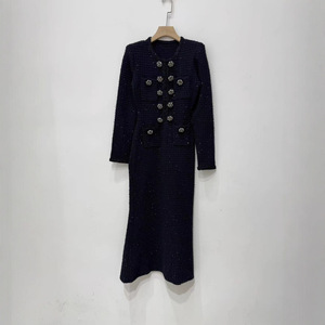 法式小众2025年新款时尚气质针织圆领修身显瘦长袖连衣裙女