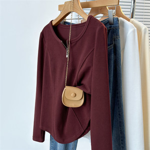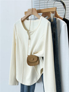 卫衣长袖t恤女拉链半开领简约大码女装秋装遮肚子显瘦上衣打底衫