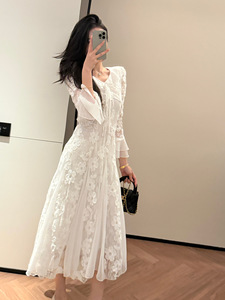 实拍 初秋气质小白裙蕾丝连衣裙打底裙收腰显瘦初恋仙女鱼尾长裙