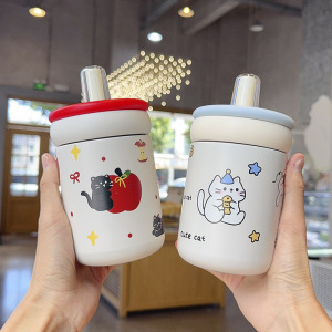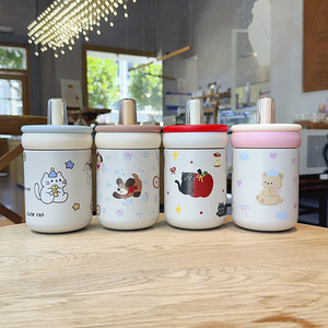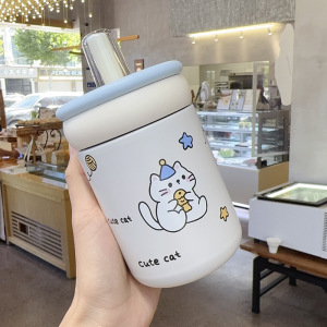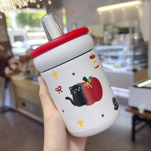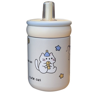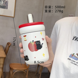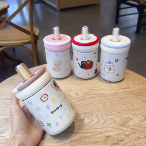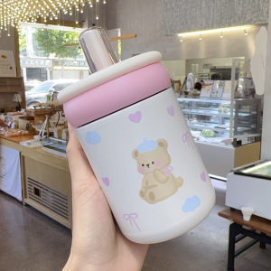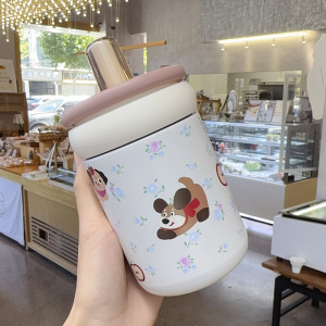 保温杯女生高颜值2025新款可爱呆萌便携外出大提环大容量吸管杯子