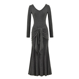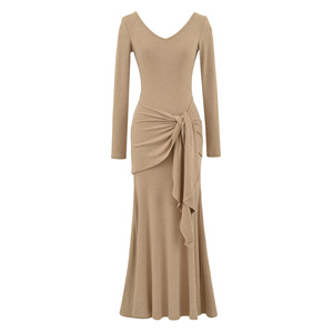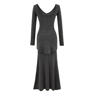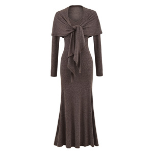 山羊绒长袖连衣裙女秋季新款气质深V领多穿修身显瘦辣妹长裙+披肩